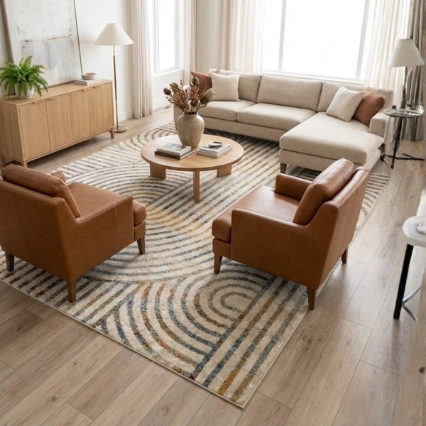 Cria delimitação visual do espaço do sofá;